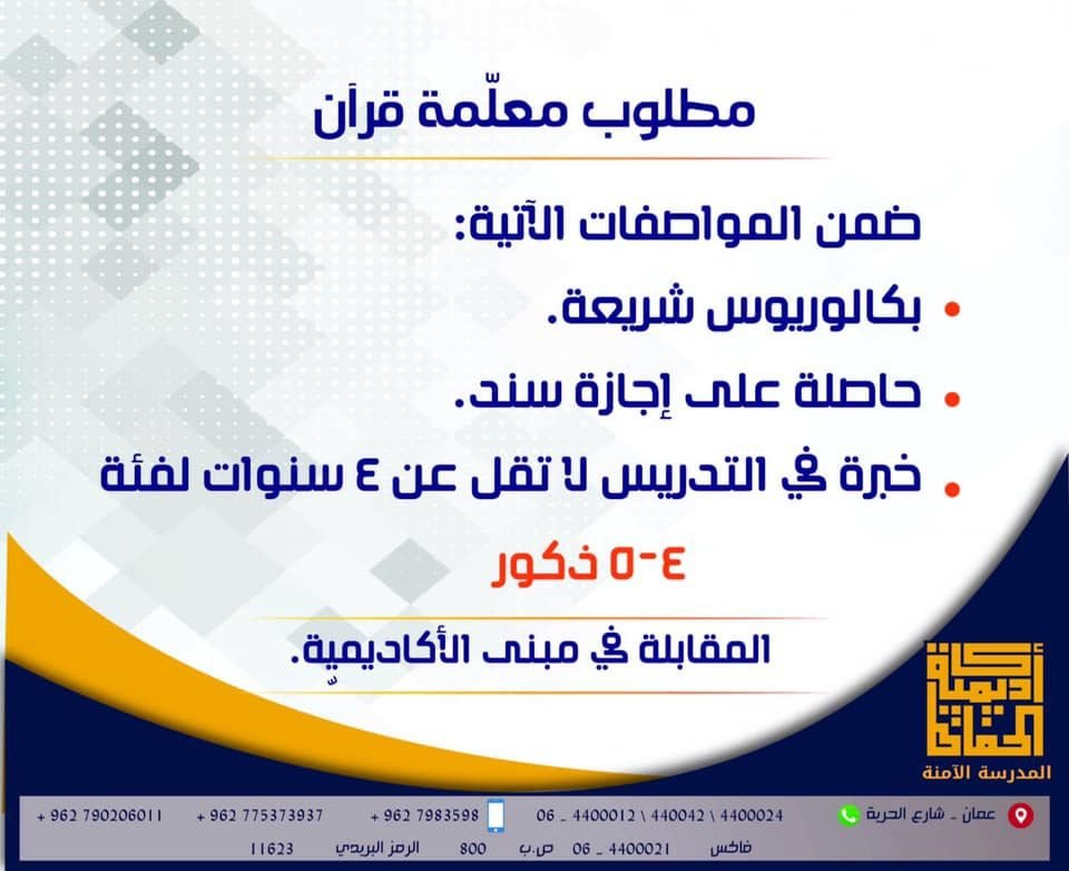 وظائف شاغرة لدى اكاديمية الحفاظ