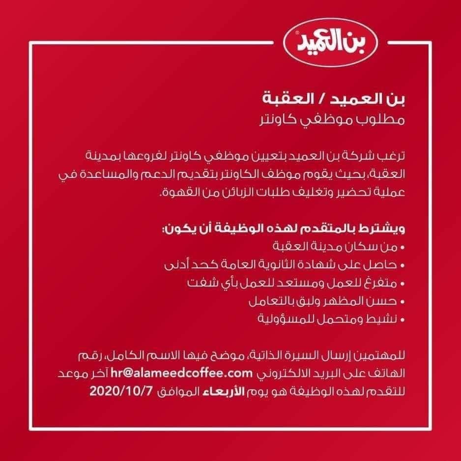 مطلوب موظفين للعمل لدى بن العميد مرحب بحملة الثانوية العامةمطلوب موظفين للعمل لدى بن العميد مرحب بحملة الثانوية العامة