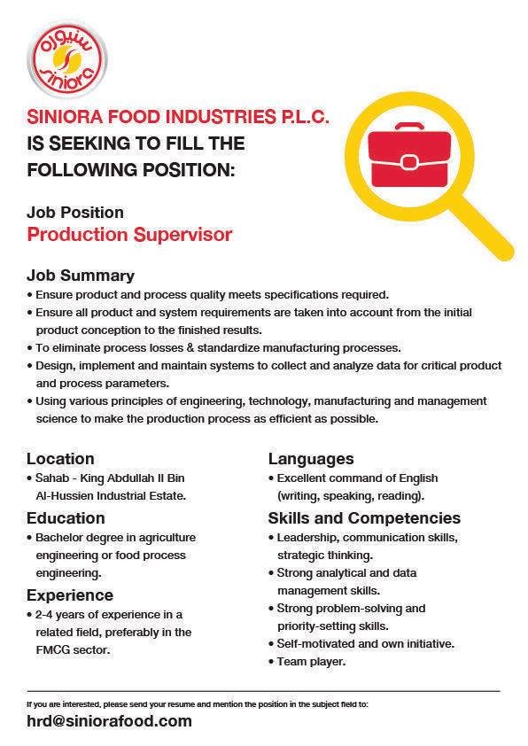 وظائف شاغرة لدى شركة سنيورة الغذائية