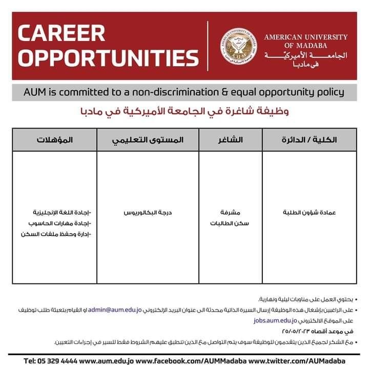 وظائف شاغرة في الجامعة الامريكية في مادبا