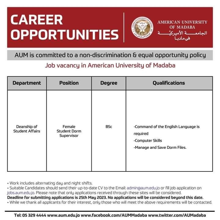 فرص وظيفية لدى الجامعة الامريكية في مادبا