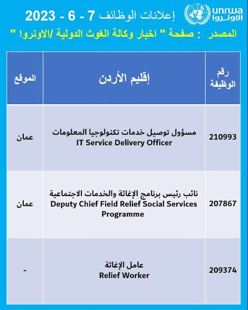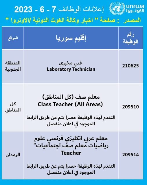 إعلانات الوظائف المتوفرة بالأونروا لهذا اليوم 7 – 6 – 2023