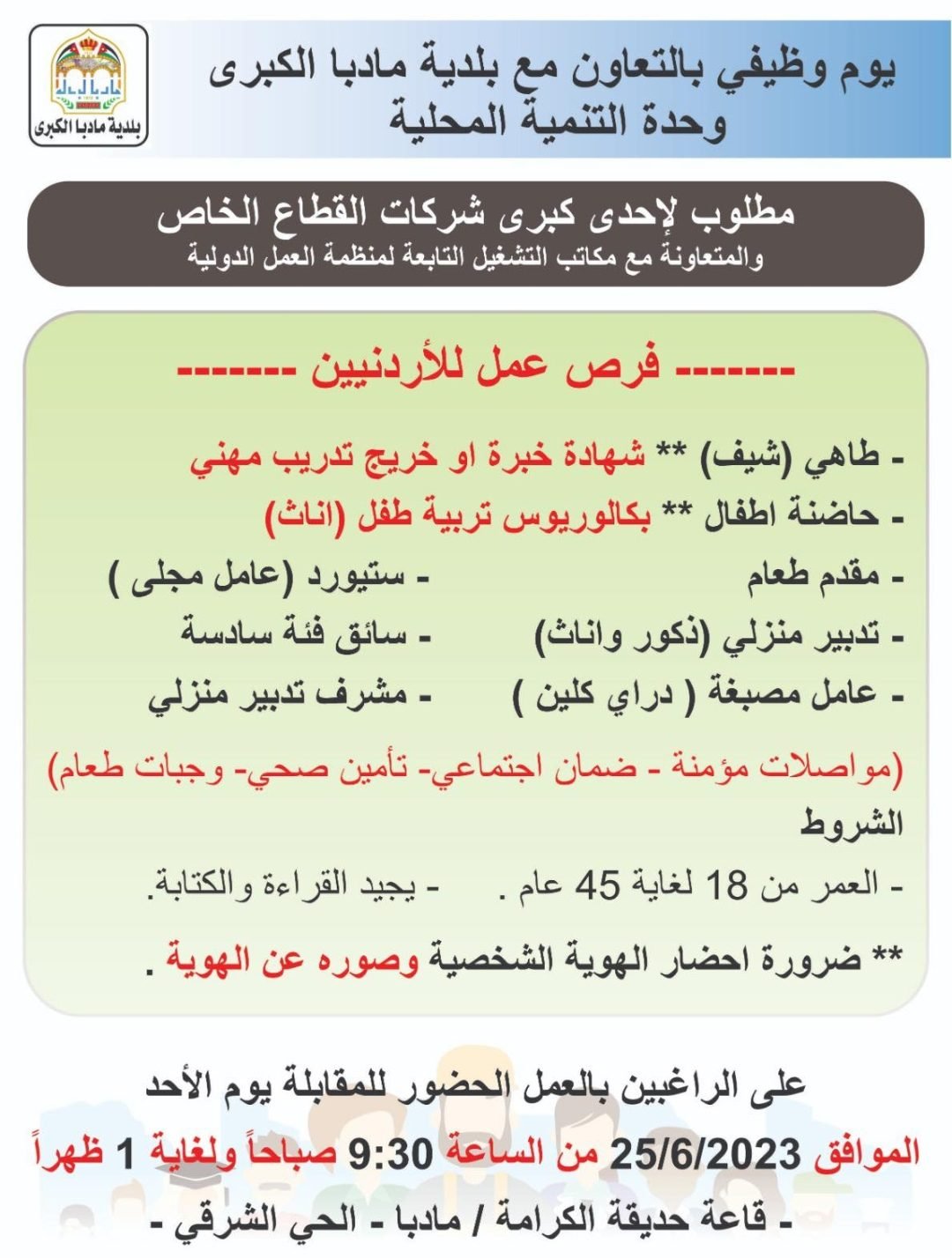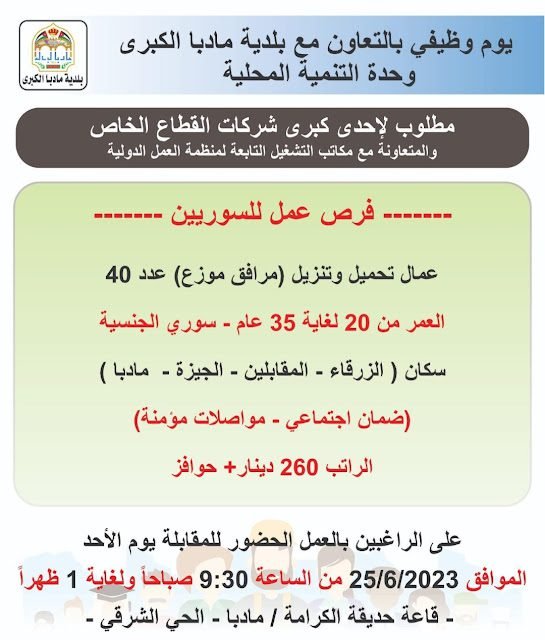 يوم وظيـفي بالتعاون مع بلدية مأدبا الكبرى للاردنـيين والسوريين