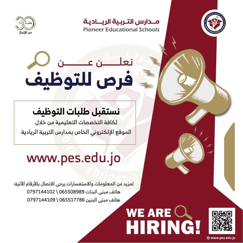 تعلن مدارس التربية الريادية عن رغبتها في استقطاب عدد من الكفاءات التدريسية من معلمين ومعلمات لكافة التخصصات للعام الدراسي القادم 2026 /2027، بالشروط الآتية: