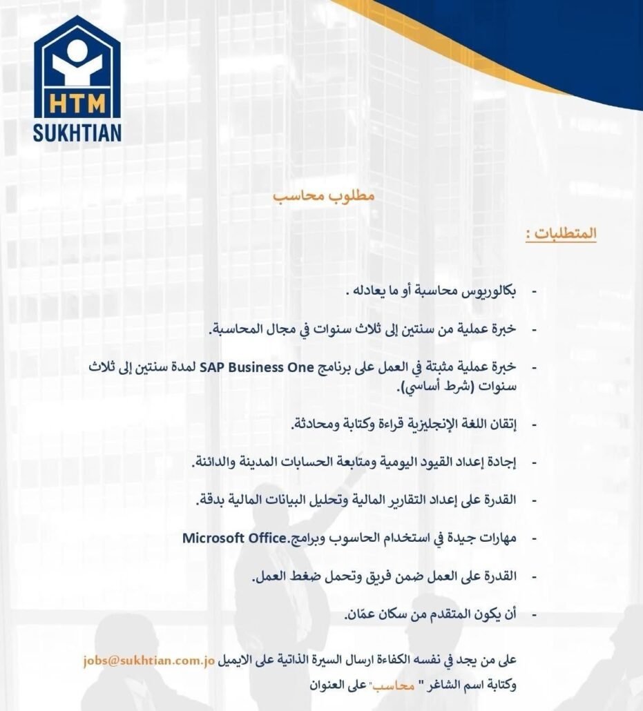 مطلوب محاسب للعمل لدى مجموعة سختيان